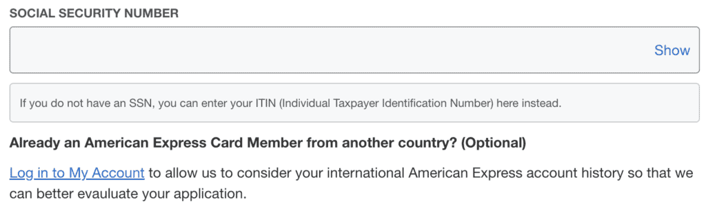 填寫申請有一個關鍵步驟:登入台灣美國運通帳號!後續就可以依照個人實際資訊填寫,其中很麻煩的是如果沒有 SSN,要提供其他個人資訊 🫠